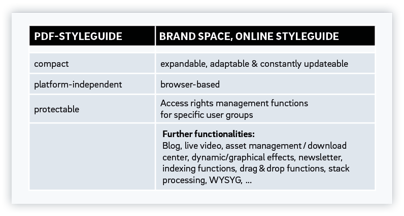 Option 2: Provision of the CD documentation in the form of an online style guide, the ”Brand Space“